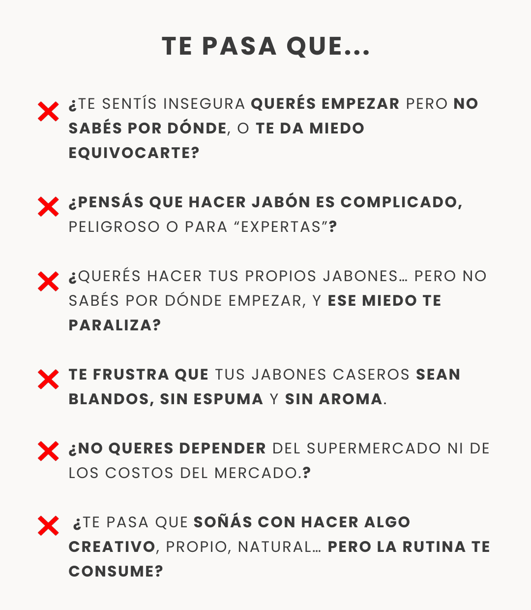 El ebook está pensado para personas que empiezan desde cero y las que ya hay hecho pero se sienten inseguras. Te guío paso a paso, con explicaciones claras y sencillas, para que puedas hacer jabones naturales de forma segura, aunque nunca antes hayas hecho uno.